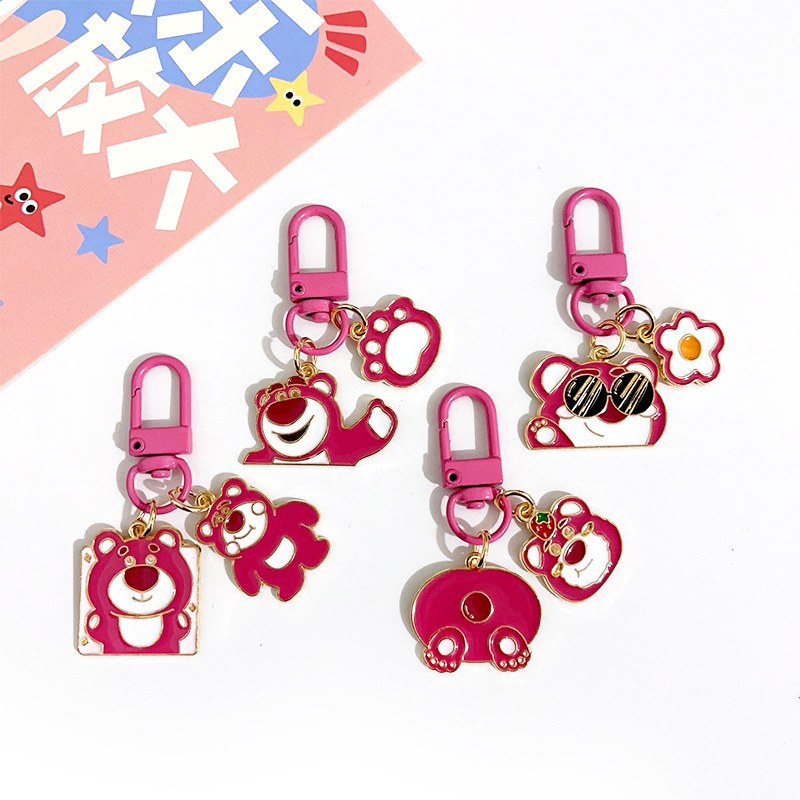 Pink strawberry bear electric car keychain pendant cute pencil case schoolbag packaging jewelry small ornaments girlfriends gift