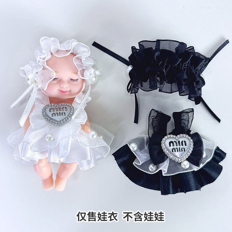 10cm Baby Clothes Lolita Headband Vinyl Baby Clothes Lace Elastic Headband Black Swan White Swan Princess Dress
