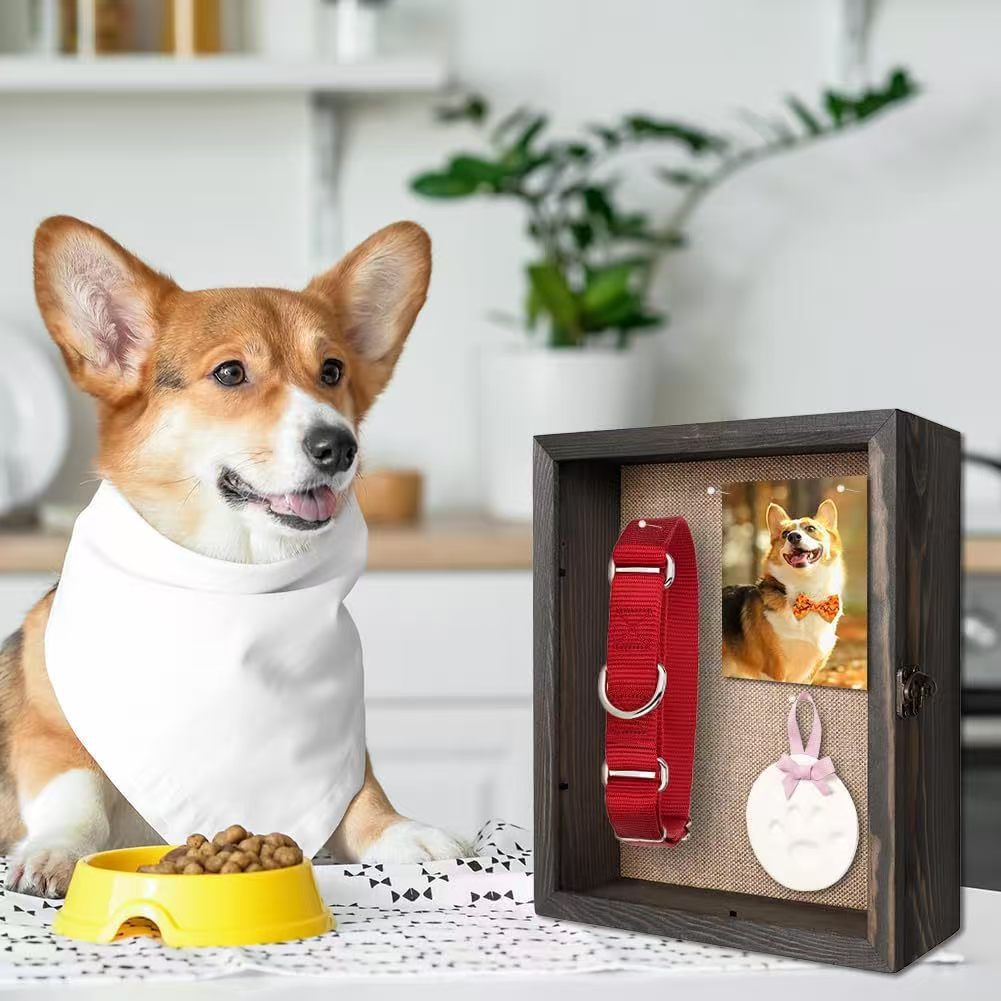 Cross-Border Wooden Pet Commemorative Photo Frame Cat and Dog Collar Toy Storage Box Cat and Dog Paw Print Photo Frame Table