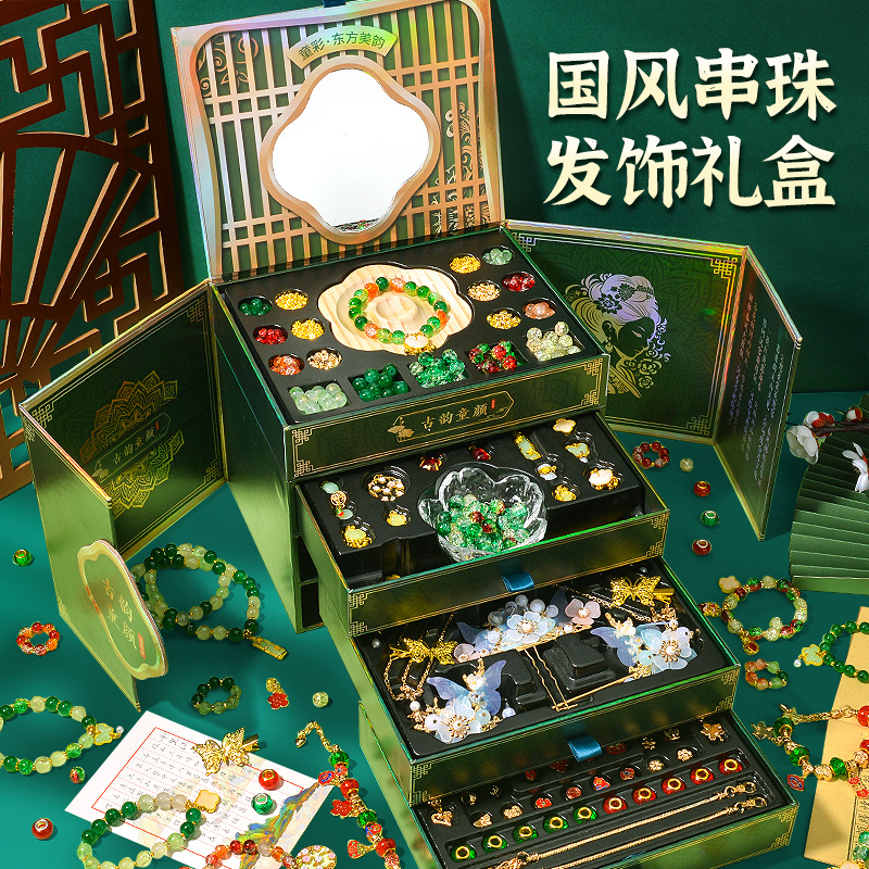 Chinese Style Bead Bracelet Hair Accessory DIY Material Kit Gift Box with Storage Box Jewelry Birthday Gift Toy Loose Beads