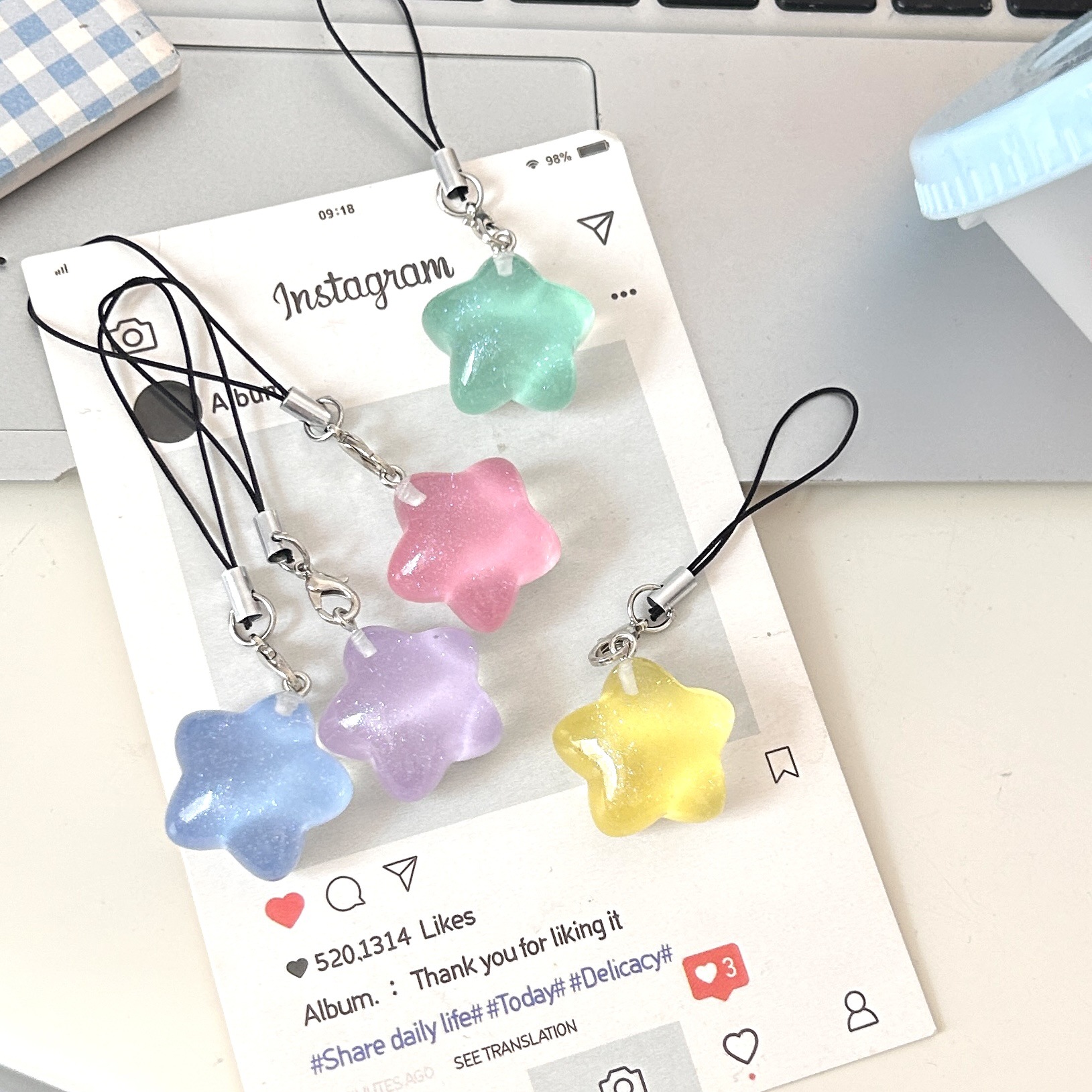 Transparent Color Thin Flash Jelly Star Mobile Phone Rope Cute Girl Soft Cute Five-pointed Star Pendant Pencil Bag Schoolbag Keychain