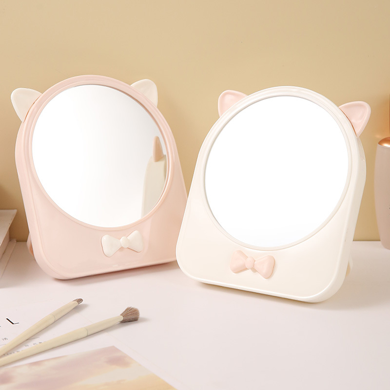 Self-created dressing table mirror lucky cat cute rotating table with storage box desktop household small cosmetic mirror