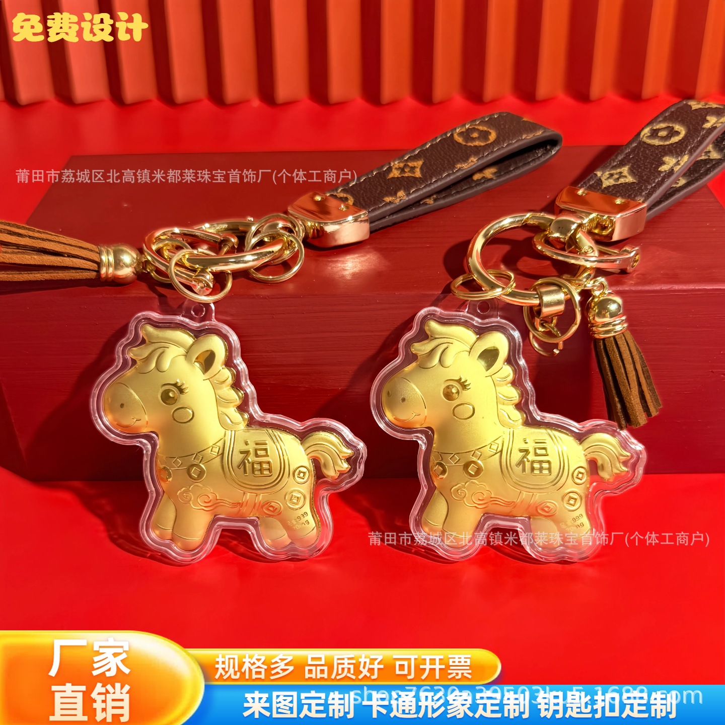 Creative Popular Pure Gold 999 Immediately Have Blessing Keychain Pendant Cartoon Horse Pendant Business Promotional Gift Wholesale