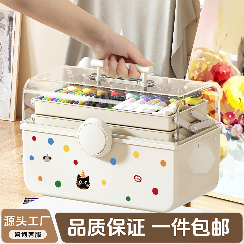 Art Tool Box, Portable Desktop Storage Box, Desk Organizer, Three-Layer Stationery Handbook, Large-Capacity Medicine Box