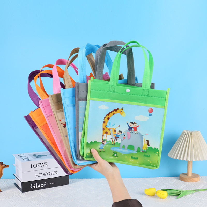 Cartoon Small Non-woven Bag Inventory Handbag with Zipper Bag Printed logo Thickened Environmental Bag Shopping Bag Portable