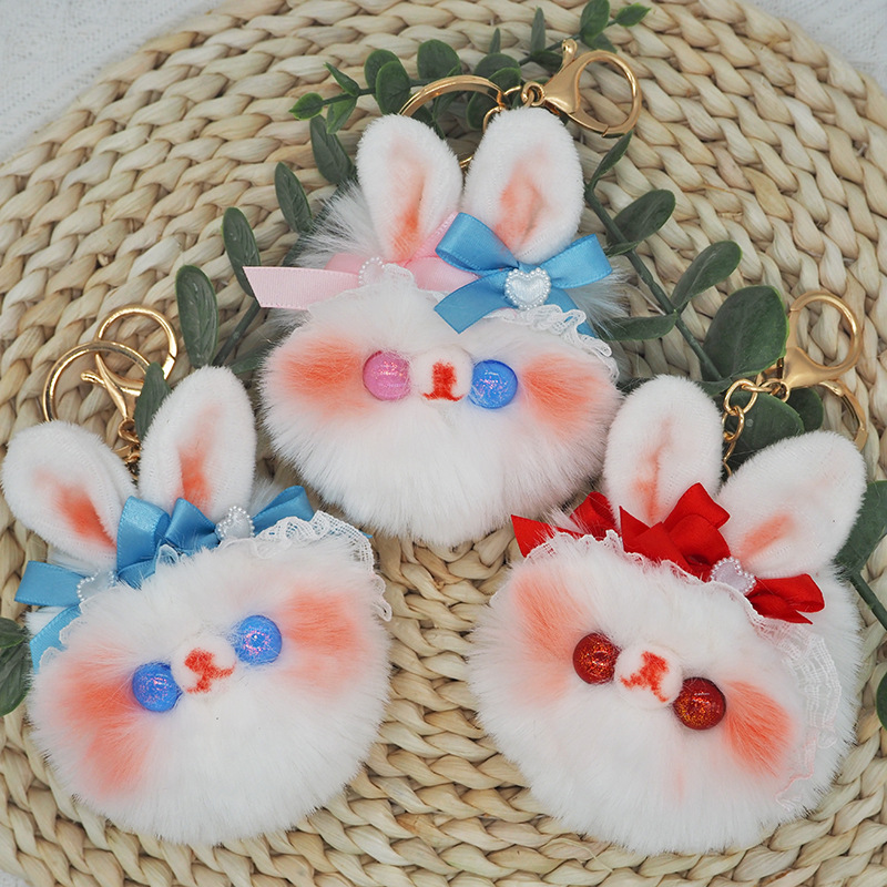 Hand-made glitter eyes rabbit keychain schoolbag plush pendant cute girl heart doll small doll gift