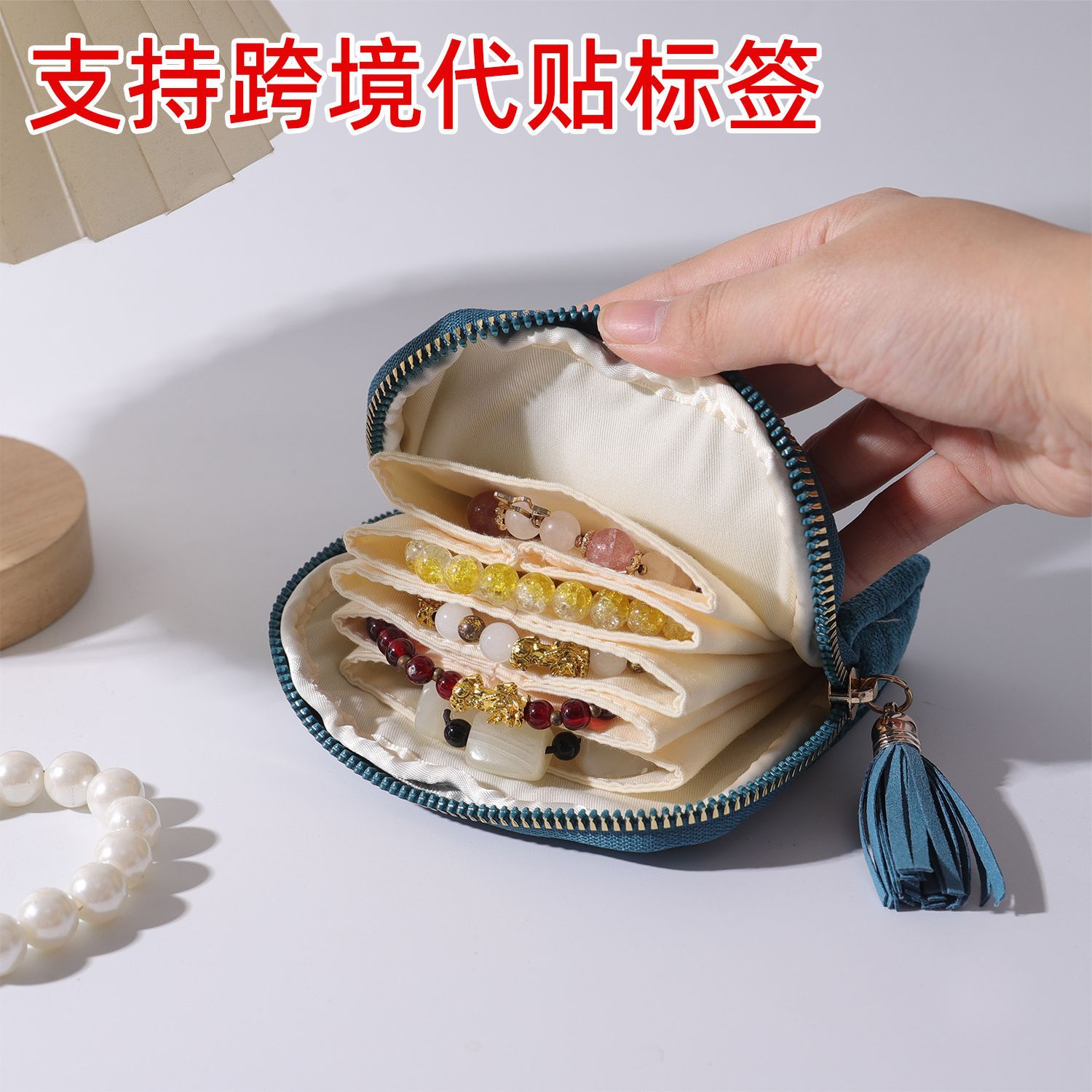 High-End Portable Jewelry Bag, Multi-Layer Crystal Bracelet, Bracelet, Jewelry Cosmetics Bag, Tassel Zipper Jewelry Bag