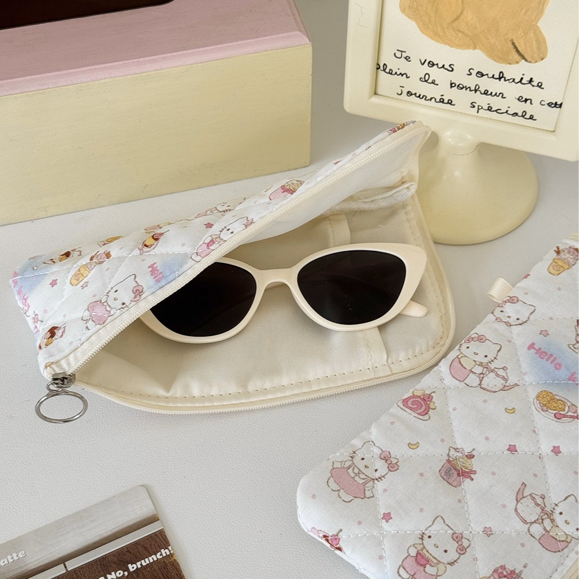 Fantasy Kitty Storage Bag Cute Cartoon Girl Heart Glasses Bag New High Color Value Student General Stationery Bag