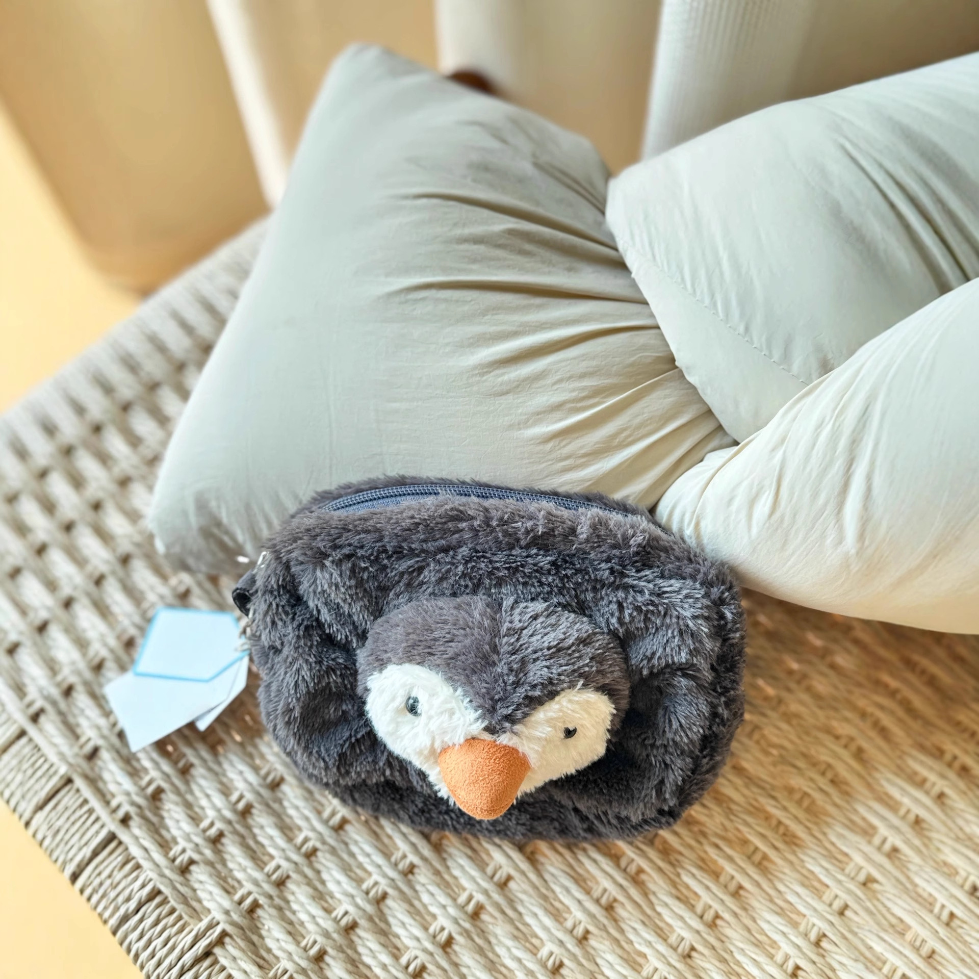British Je Plush Cute Toy Doll Healing Cosmetics Bag Pencil Case Cosmetic Bag Penguin Shape Large Capacity Gift Giving