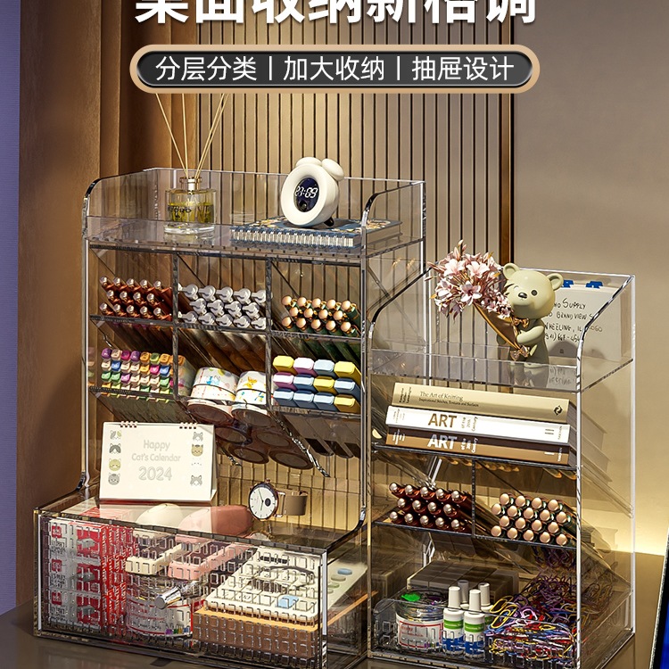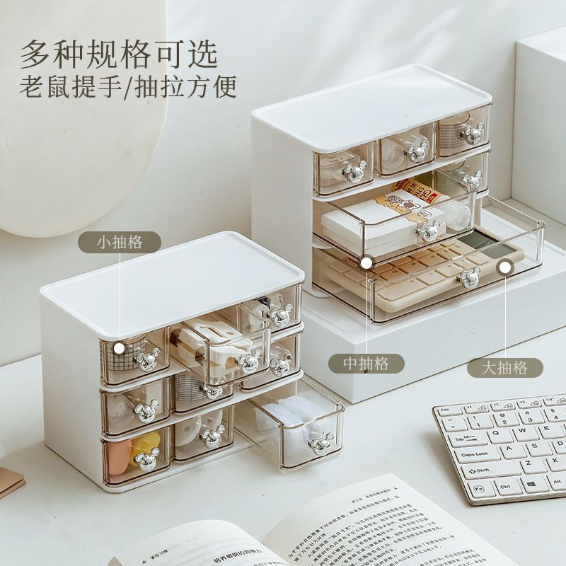 Desktop Storage Box Drawer-Type Transparent Cosmetics Desk Stationery Storage Rack Desk Organization Student Dormitory
