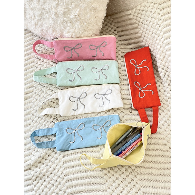 Dopamine original embroidery design simple bow pencil case niche ins cute girl storage bag small bag
