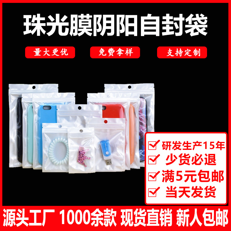 Pearlescent Self-sealing Bag Yin and Yang Bone Bag Decorative Accessories Data Line Mobile Phone Shell Packaging Bag Translucent Plastic Sealed Bag