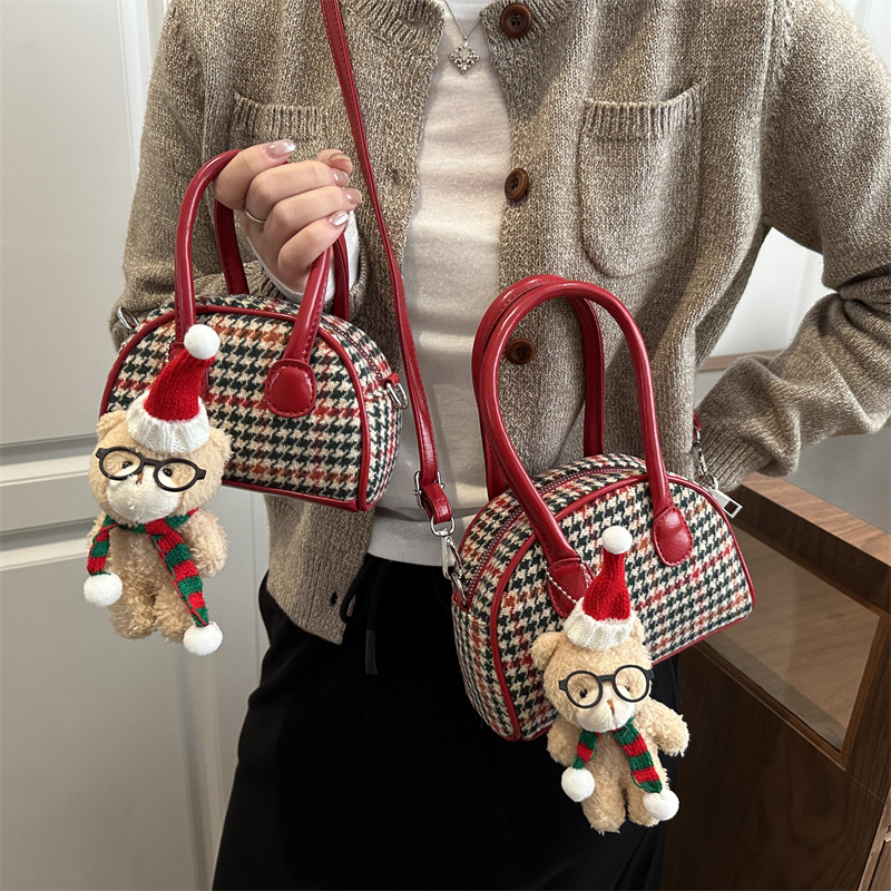 Fashion Plaid Mini Bowling Bag Handbag for Women 2026 Christmas Cute Korean Shell Lipstick Headphone Bag