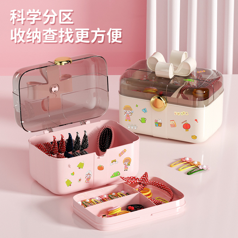 Creative Double-Layer Guka Dust-Proof Storage Box with Lid for Kidsren and Girls Cute Stickers Household Hair Accessories Hairpin Jewelry Box