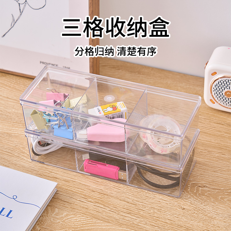 Cross-Border Transparent Simple Three-Compartment Stationery Storage Box Hand Tape Multi-Functional Student Desk Desktop Storage Artifact