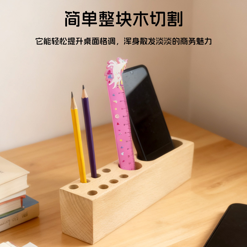 Creative Solid Wood Pen Holder Multifunctional Stationery Storage Box Business Gift Cute Wooden Pen Holder Beech Wood Pen Holder