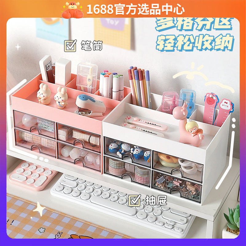 Stationery Notebook Student Desktop Storage Box Drawer-Type Organizer Kidsren's Hair Accessories Desk Notebook Pen Holder Storage Rack