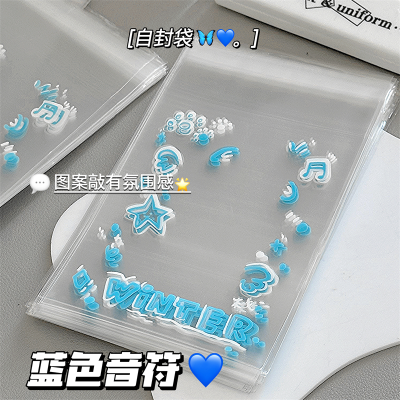 Blue Musical Note Ins Style High-Value Card Packaging Material Ziplock Bag Small Card Opp Packaging Bag Jewelry Storage Bag