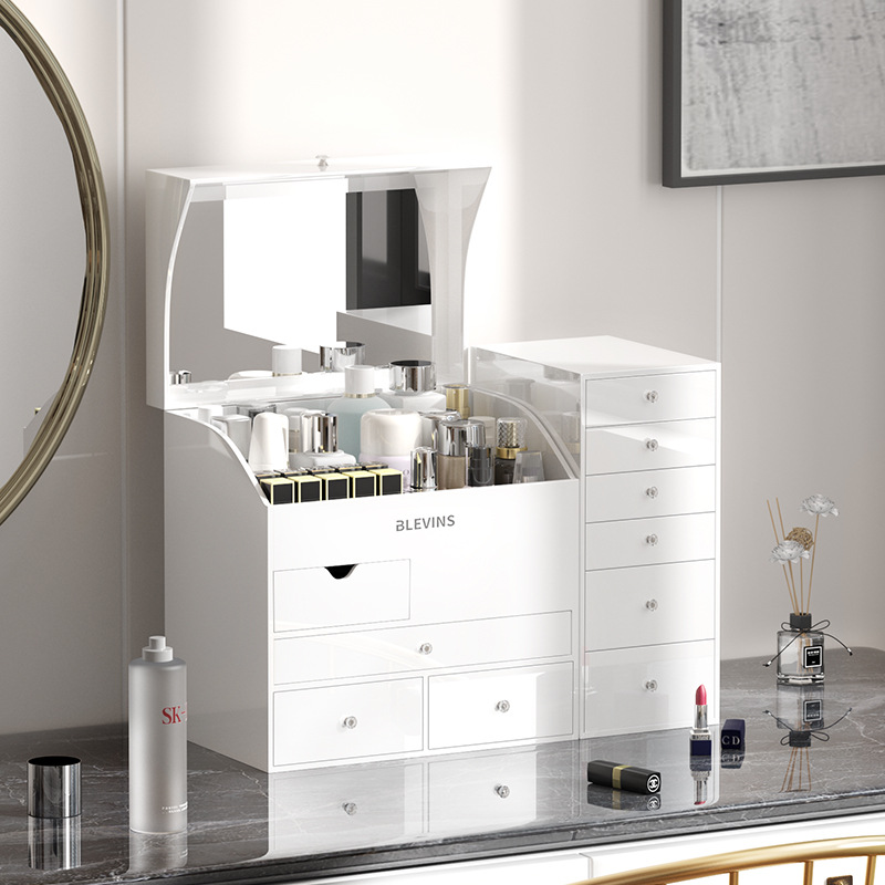 White Cosmetics Storage Box, Light Luxury, Large-Capacity Skin Care Product Storage Box, Dust-Proof Dressing Table Storage Rack