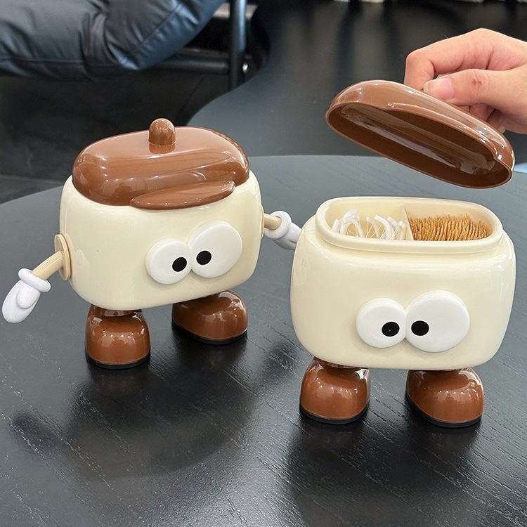 Big Eyes Household Toothpick Box Creative Cute Toothpick Jar Cotton Swab Tube Dental Floss Storage Box New Light Luxury