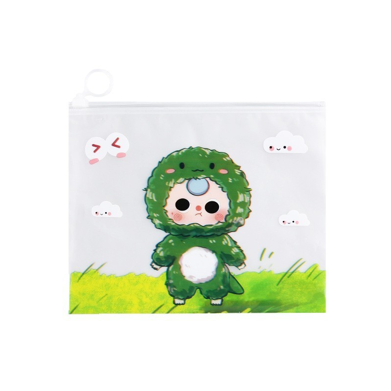 Cartoon Self-Sealing Zipper Bag A5 Document Test Paper Storage Pull-Tab Pen Bag Jewelry Accessories Plastic Frosted Packaging Bag