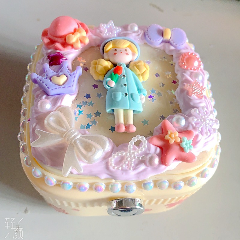 Cream glue DIY handmade double layer with mirror jewelry box jewelry storage box