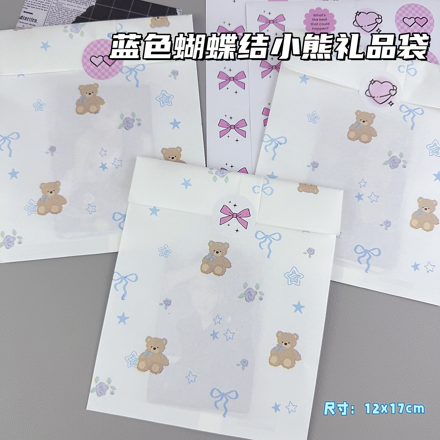 Blue Bow Bear Kraft Paper Bag Packaging Ins Gift Bag Student Exquisite Cute Packaging Bag Ziplock Bag
