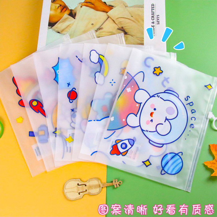 Thick transparent waterproof drawstring bag cartoon PVC student examination paper storage bag ring zipper pencil case small file bag