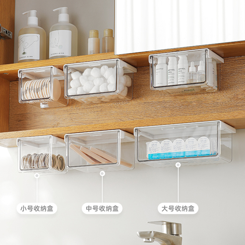 Dust-Proof Cosmetics Storage Box Cabinet Punch-Free Wall-Mounted Drawer-Type Transparent Desk Bottom Mirror Cabinet Bottom Storage Box