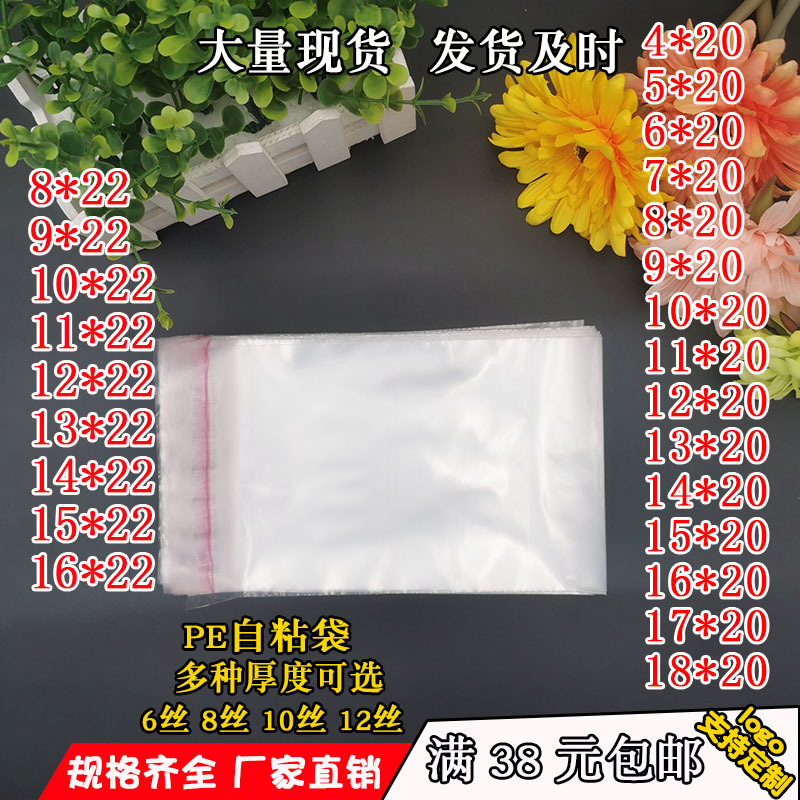 Manufacturer's In-Stock Pe Self-Adhesive Sealing Bags, Accessories for Small Packaging, Transparent Soft Plastic Bags, 20/22 Length