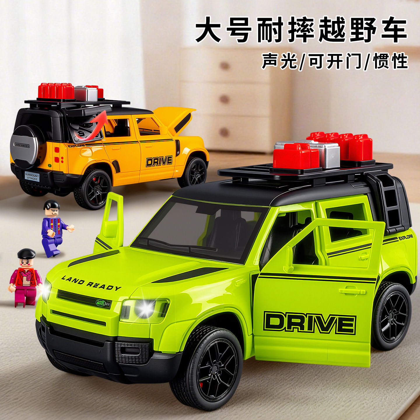 Boy's Large Inertia Off-Road Vehicle Model Ornaments Simulate Sound and Light, Open the Door, Resist Falling, and Bring a Tool Box Toy Car