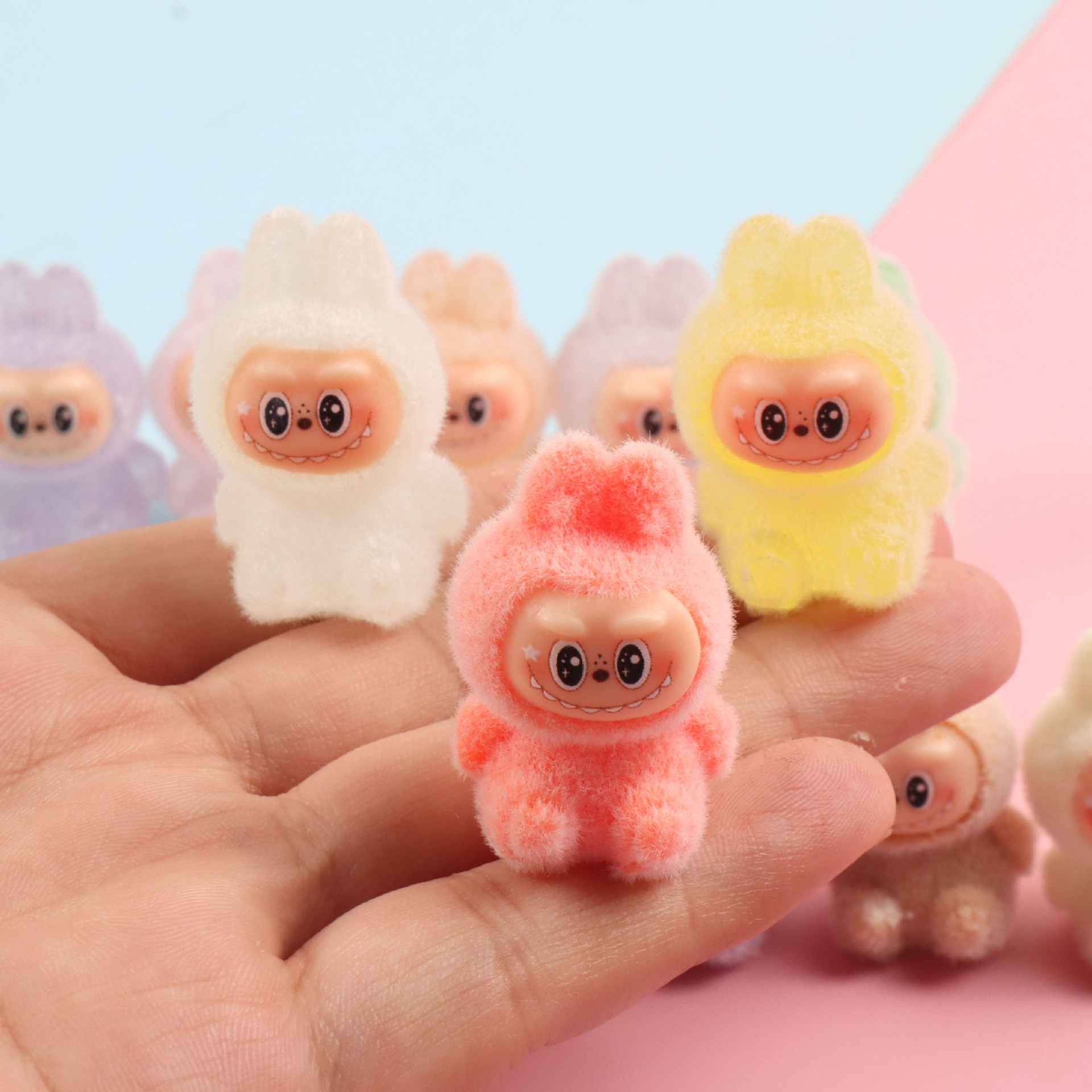 Flocked Plush Keychain Pendant Blind Box Doll Cartoon Plush Backpack Keychain Ornament Micro Landscape Decoration