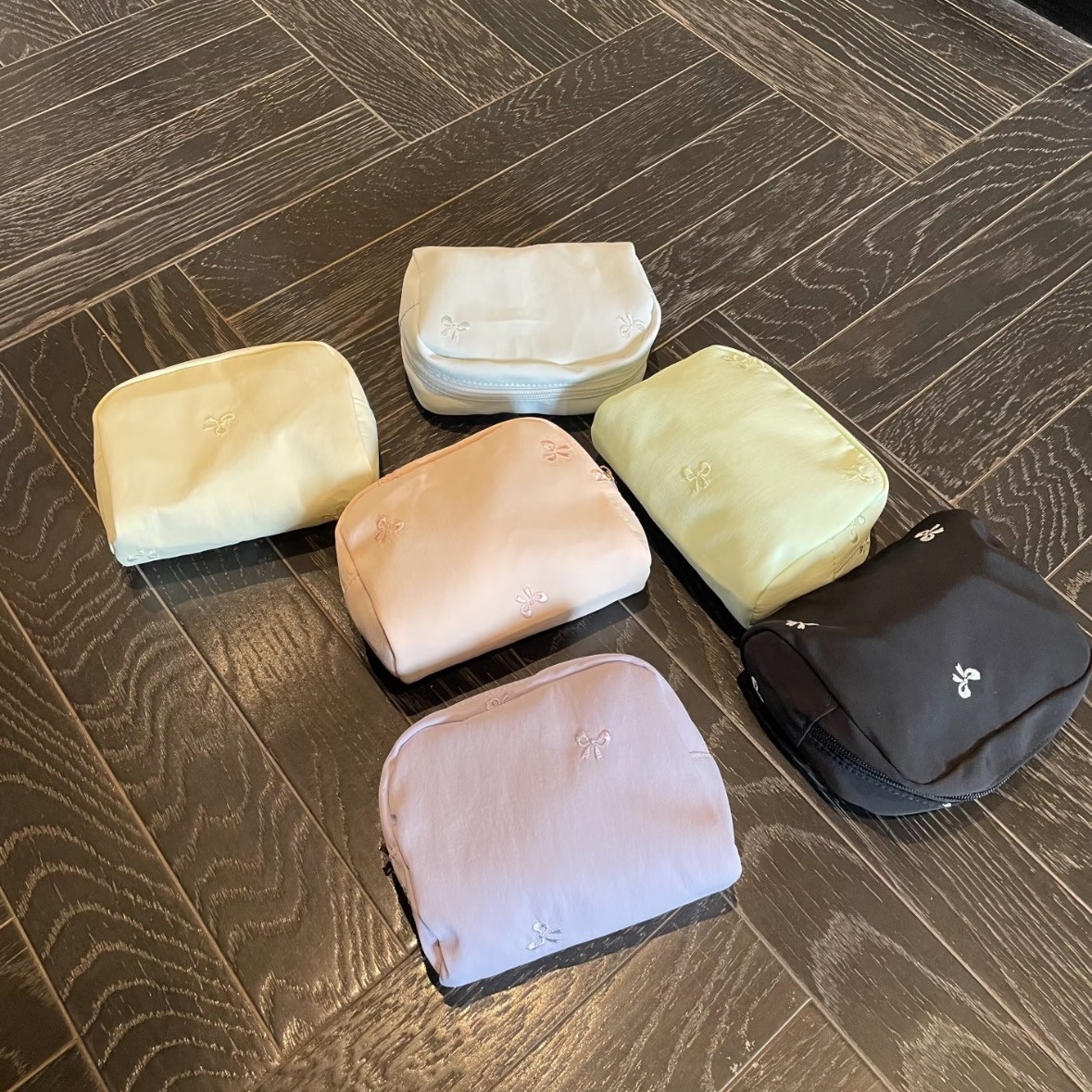 Sweet Bow Embroidered Cosmetic Bag, Cute and Portable Student Stationery Pencil Case, Macaron Color Multi-Functional Storage Bag