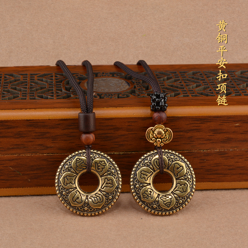 Vintage brass safety buckle necklace men's six-word mantra pendant Lucky Lucky simple jewelry women's lanyard bag