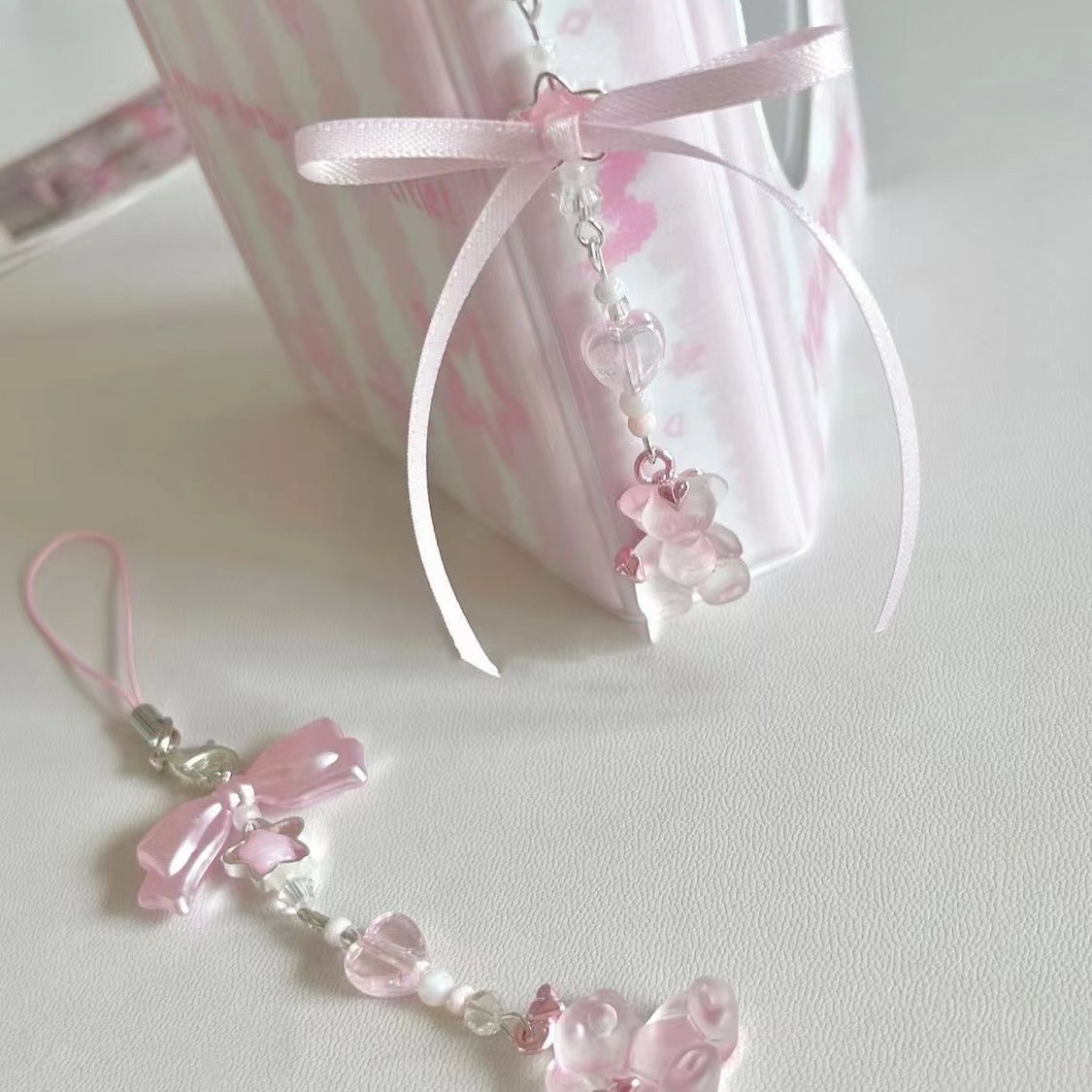 Korean Style Ins Style Sweet Beaded Hanging Chain Mobile Phone Chain Card Book Pencil Case Bag Hanging Pink Girl's Heart Gift