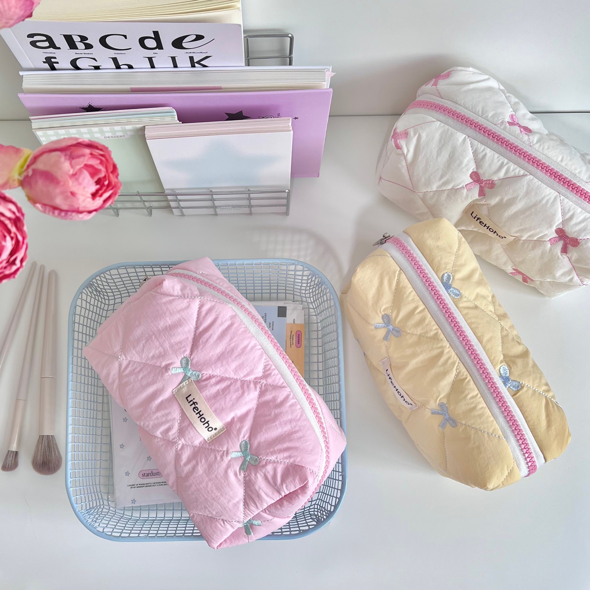 Ins Cute Bow Cosmetic Bag Female Large Capacity Student Dormitory Cosmetics Bag Pencil Bag Bag Medium Bag Pencil Bag Set