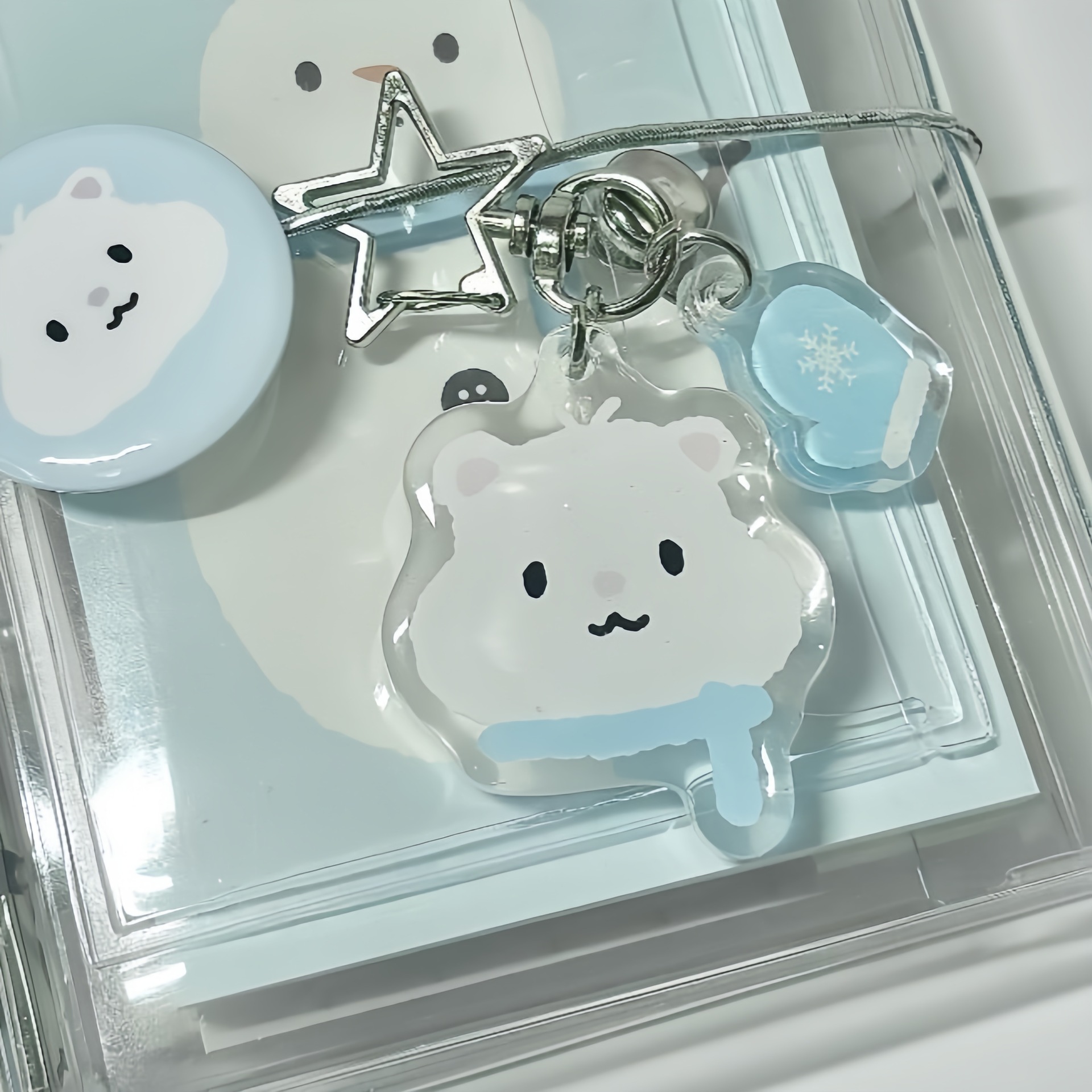 Summer Cool Series Mouse Star Buckle Pendant Acrylic Keychain School Bag Pencil Case Pendant Gift for Friends and Besties