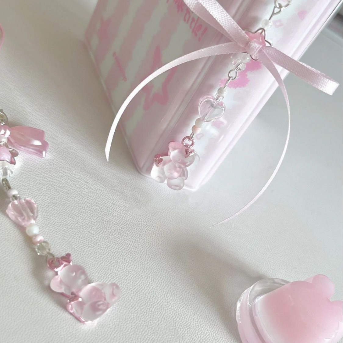 [It's My Bear] Beaded Hanging Chain Mobile Phone Chain Card Book Pencil Bag Bag Hanging Pink Girl Heart Gift