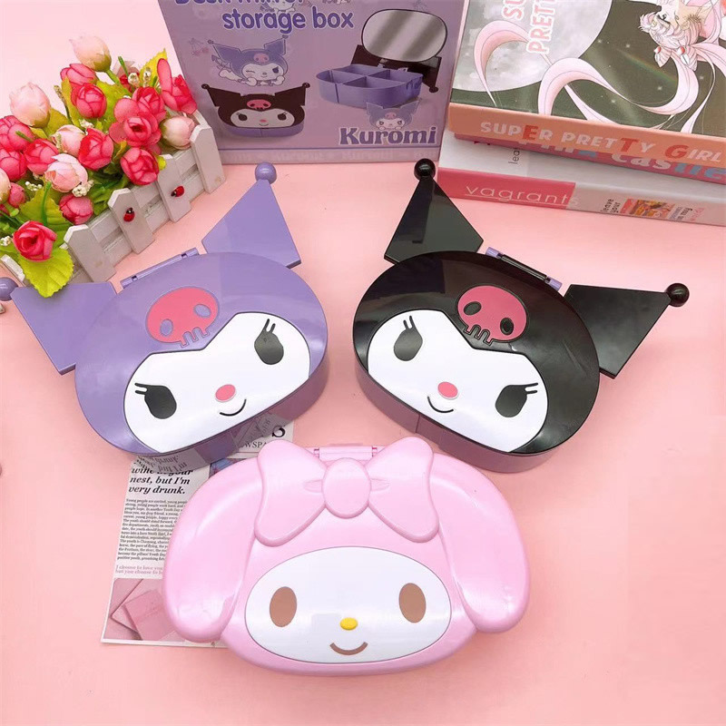 New Cartoon Kulomi Jewelry Box Cute Girl Heart with Mirror Desktop Cosmetic Storage Box Finishing Box