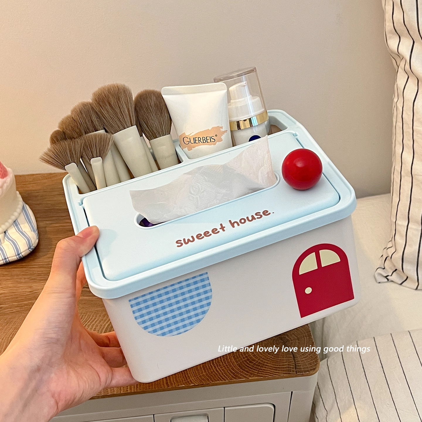 2025 New Small House Desktop Storage Box Tissue Box Makeup Brush Lipstick Tube Stationery Sundries Desk Storage Rack