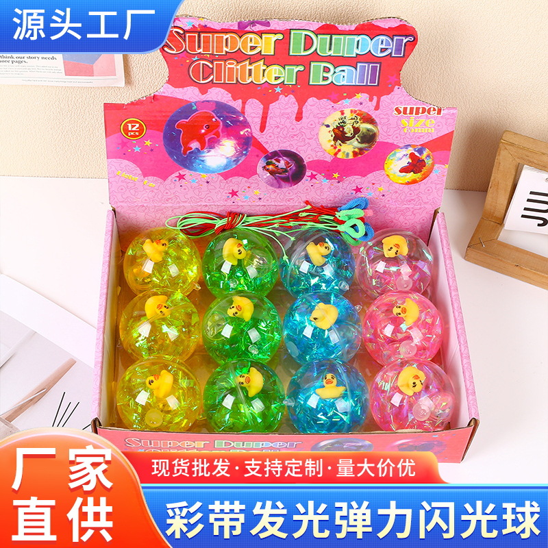 New Thickened Cartoon Glitter Crystal Ball Children's Bouncy Ball Jumping Ball Luminous Toy Ribbon Luminous Bouncy Ball