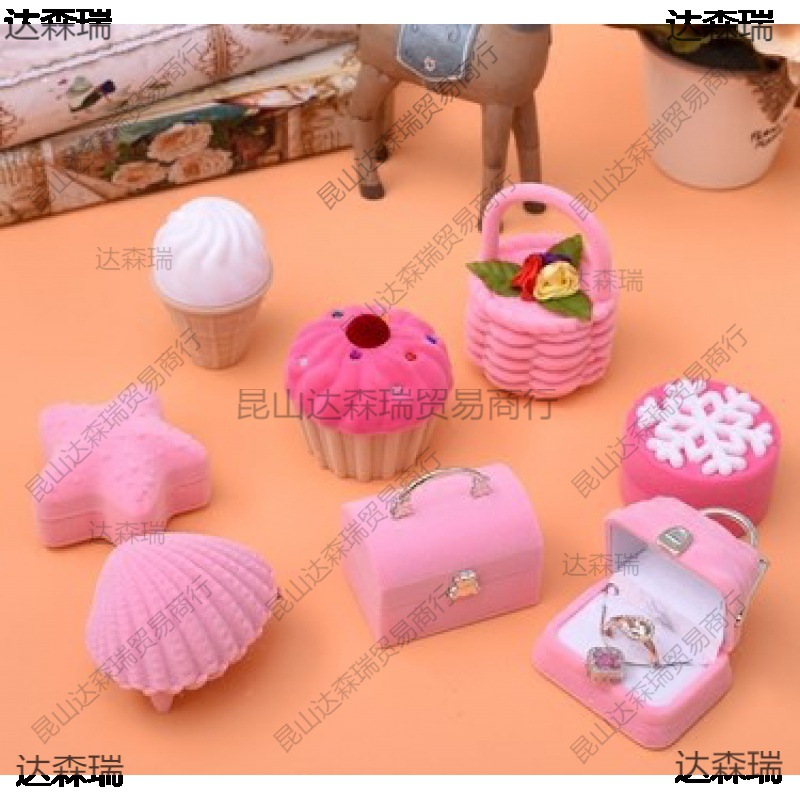 Cute series European flannel ring box cartoon jewelry proposal gift jewelry box jewelry storage box earrings