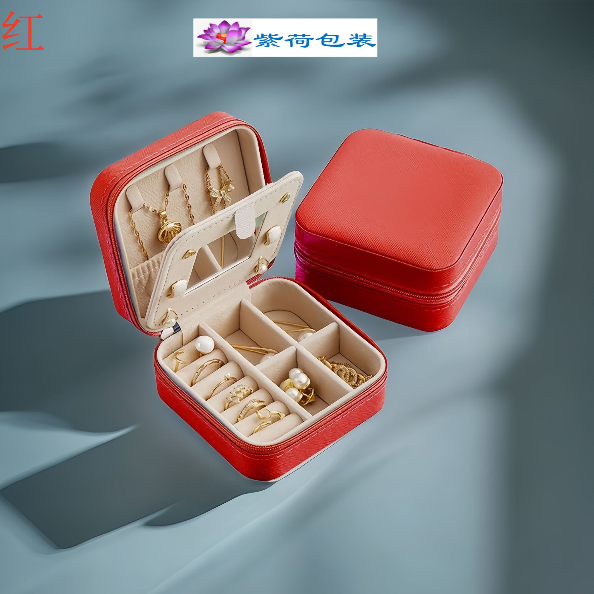 Dreyz Three-Layer in stock PU Leather Cute Jewelry Storage Box with Mirror Ring Tray Necklace Storage Bag