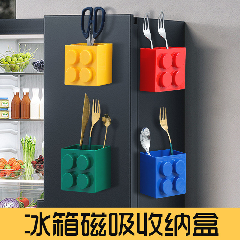 Cute Building Blocks Magnetic Refrigerator Storage Box Decorative Refrigerator Magnet Kitchen Enamel Board Message Board Plastic Wrap Storage Rack