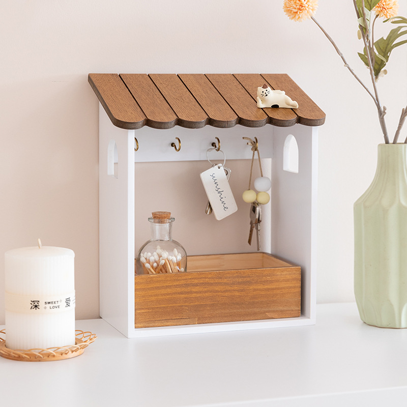 Decorative Wooden Key Storage Box for Entrance, Quirky Shoe Cabinet, Cute Remote Control and Mask Holder