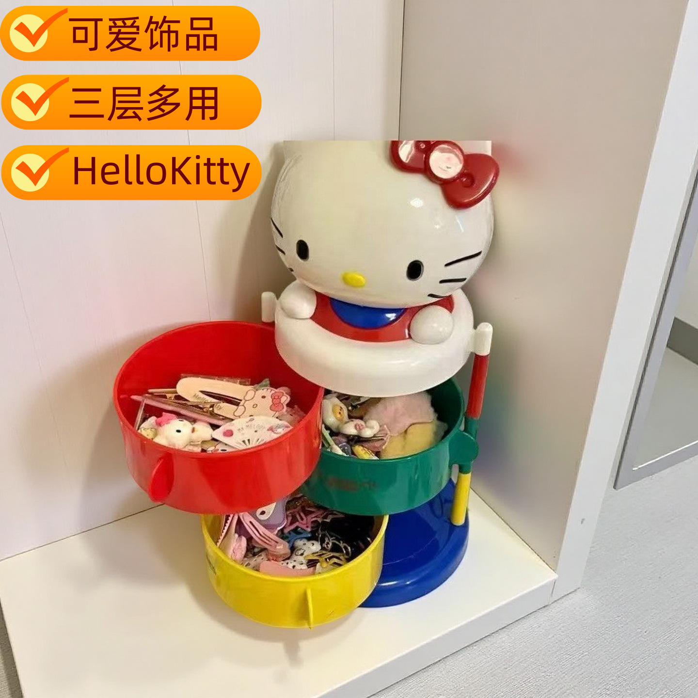 [Ready Stock] Kt Three-Layer Rotating Storage Box Ornaments Cute Cat Head Storage Rack Girls Gifts for Besties Jewelry
