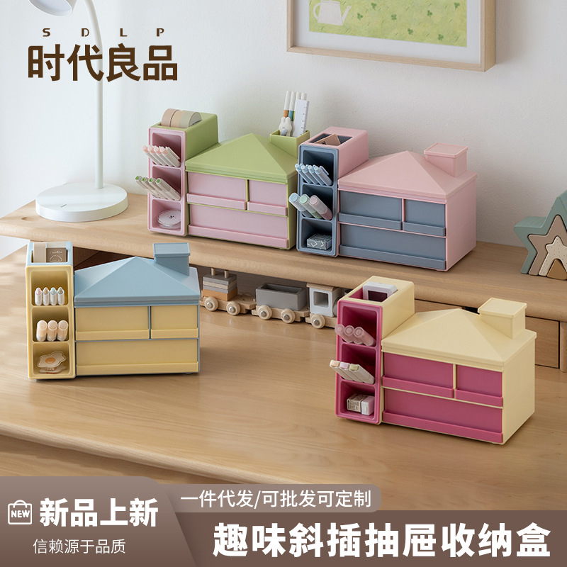 Slanted Pen Holder with Drawer Desktop Creative Cute Storage Box Large Capacity Multifunctional Marker Pen Barrel Storage Rack