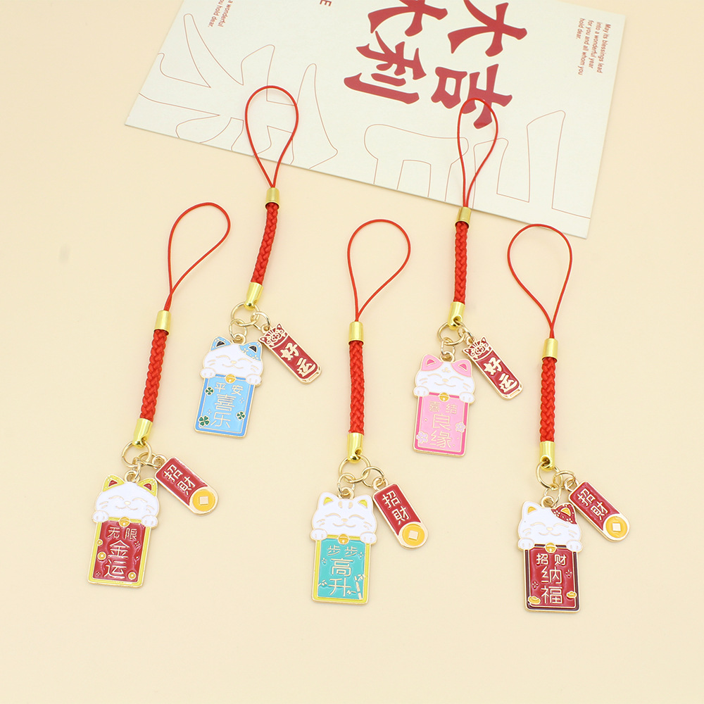 New Lucky Cat Mobile Phone Pendant, Happy Marriage Text, Blessing Cat, Male and Female Student Pencil Case, School Bag, Small Pendant