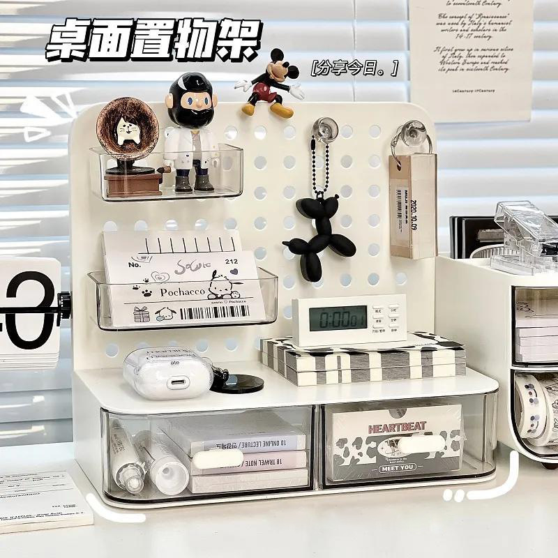 Desktop Perforated Board Storage Rack Vertical Student Desk Storage with Drawer-Type Desk Stationery Storage Box