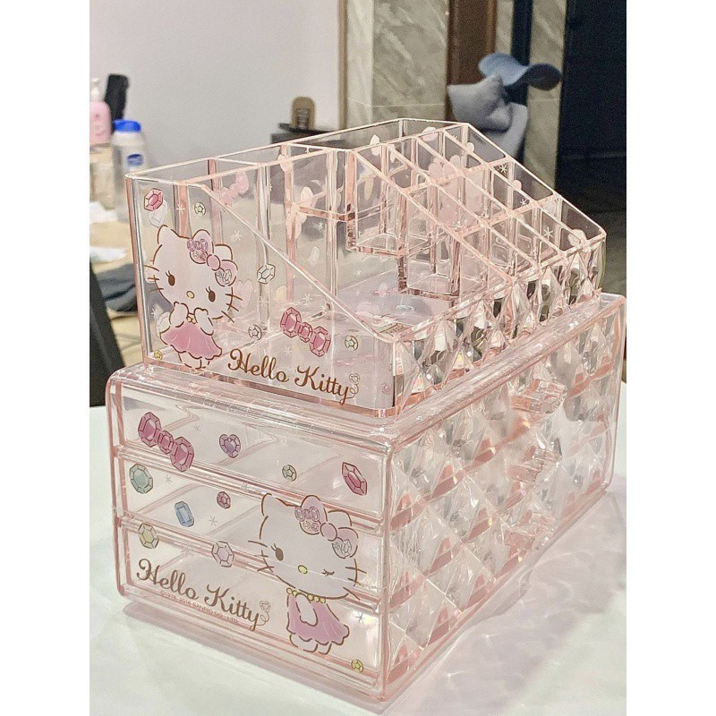 Xiaohongshu Ellokitty Storage Box Kt Cat Drawer Makeup Storage Box Cute Desktop Storage Rack Shangshuo